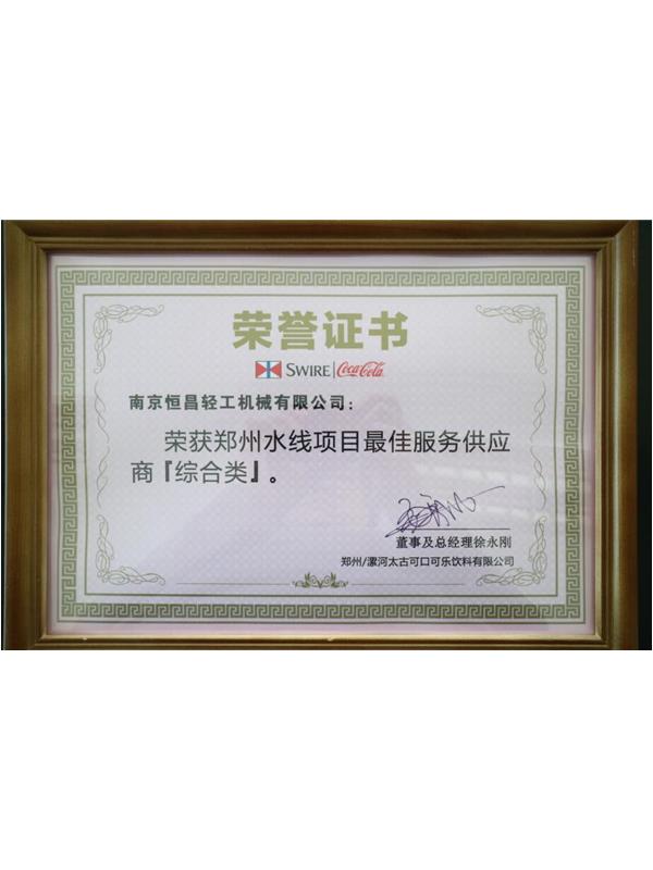 南京恒昌包裝作為后段整包商,在鄭州太古可口可樂(lè)48000bph水線項(xiàng)目中獲得“最佳服務(wù)供應(yīng)商”殊榮!