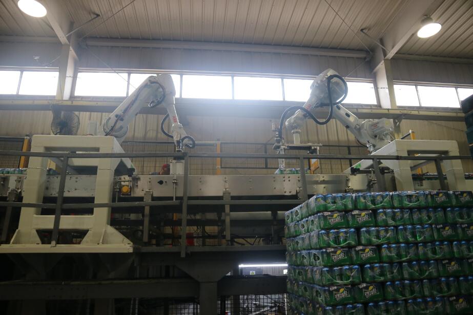 此設(shè)備是南京恒昌根據(jù)客戶的實際需求進行定制的,滿足現(xiàn)有普罐9箱、10箱花型、SLEEK CAN、MINI SLEEK CAN13箱花型碼垛需求,并且具備未來2*6、3*4、3*5花型升級功能和生產(chǎn)能力,單臺能力達到60箱/分鐘。設(shè)備主體采用ABB智能機器手,通過 SEW伺服電機帶動雙向絲桿,來驅(qū)動固定在2根進口導軌上的夾板,對包型夾護后由機器人來進行位移分道,轉(zhuǎn)向。設(shè)備運行穩(wěn)定,高效,占用空間小,減少了對箱包的碰撞和磨損。